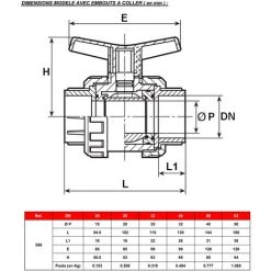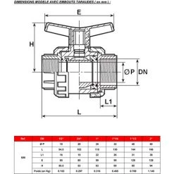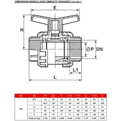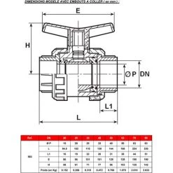 SFERACO Vanne à Sphère PVC-U PN16 Raccord Ø1″1/2 (40×49) – Passage Ø40 – à Visser – Manette Bleue
