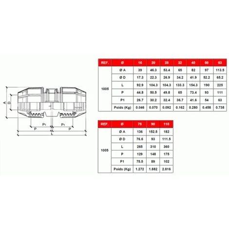SFERACO Raccord Plastique Tube PE Ø110 – Manchon De Jonction
