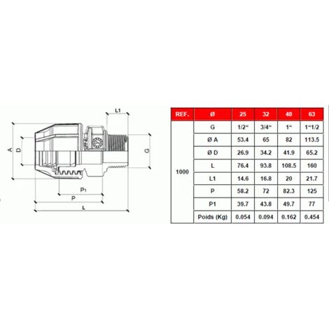 - Type de raccordement: Mâle
