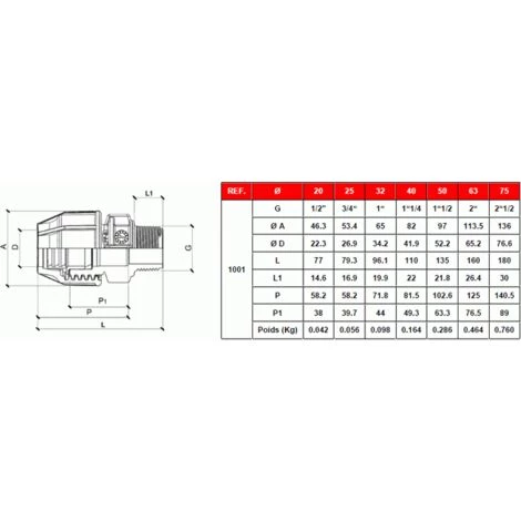 • Type de raccordement: Mâle
