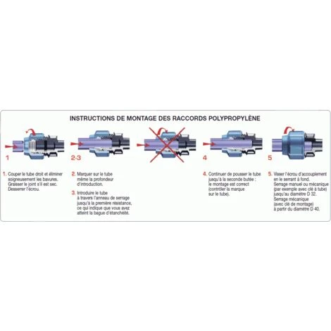 Raccord polypropylène à serrage extérieur pour tuyau PE et PEHD.