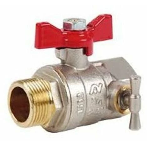 Vanne à sphère en laiton à purge – Mâle/Femelle – Ø3/4″ – Manette papillon rouge de Sferaco – 546005
