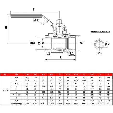Corps inox ASTM A351 CF8M – Sphère inox ASTM A351 CF8M – Presse étoupe PTFE – Sièges PTFE – Passage intégral
