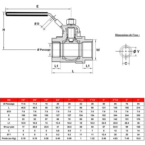 Corps inox ASTM A351 CF8M – Sphère inox ASTM A351 CF8M – Presse étoupe PTFE – Sièges PTFE – Passage intégral