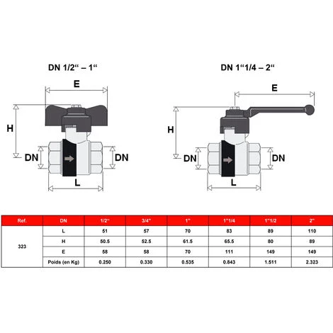 - Forme: Vanne coudée