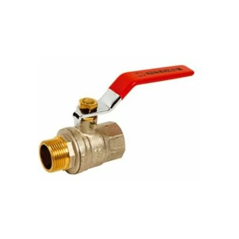 Vanne à sphère laiton PN40 mâle et femelleSFERACO · Poignée acier plate rouge · Diamètre : 1/4 · Diamètre de passage : 10 · Pression Nominale (bar) : 40 · Température Mini (°C) : -10 · Température Maxi (°C) : 120 · Ecartement (mm) : 49.5 · Interne brossé · Sphère laiton chromé · Presse étoupe PTFE · Passage intégral · Axe injectable · Marquage corps « 9S » · Poignée réversible · Poignée acier plate ou manette papillon aluminium