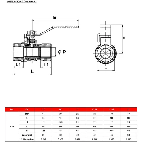 PS : 5 bars. TS : -5 °C à +60 °C.